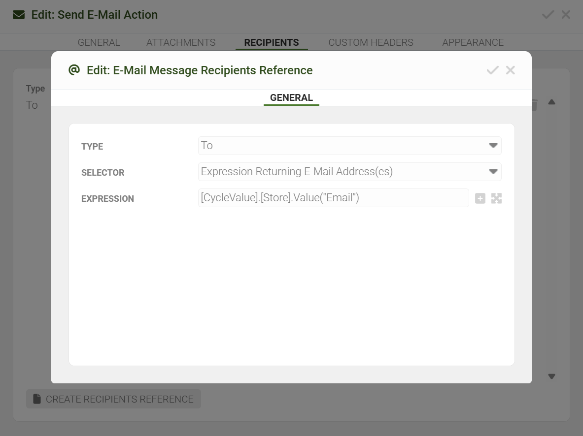 You will gain access to the whole row of the table using the CycleValue and expression Value, for example, [CycleValue].[Store].Value("Email") to get the current Email.