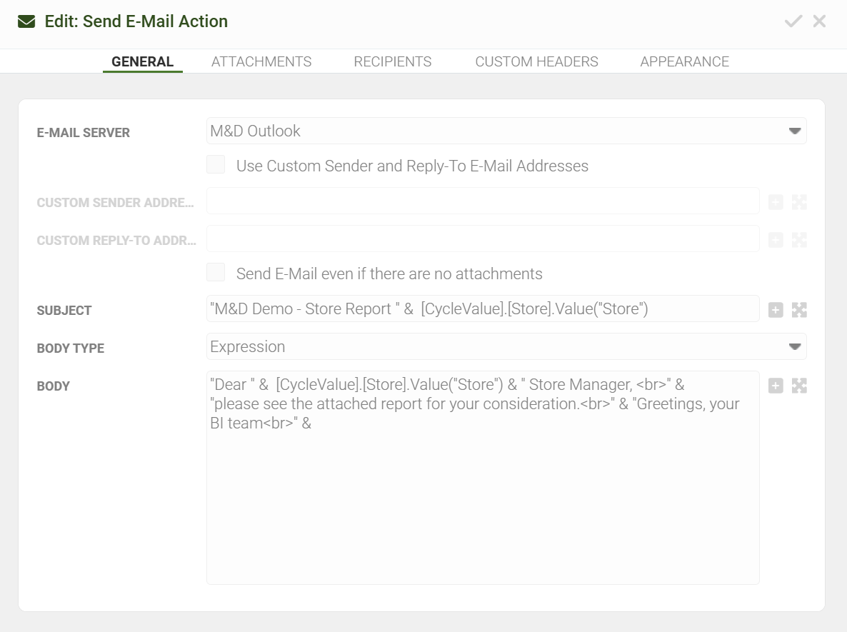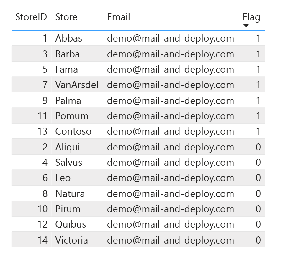 The Cycle will go through all the Stores in the Supporting Report and all the Store Managers with Flag = 1 will get a Report.