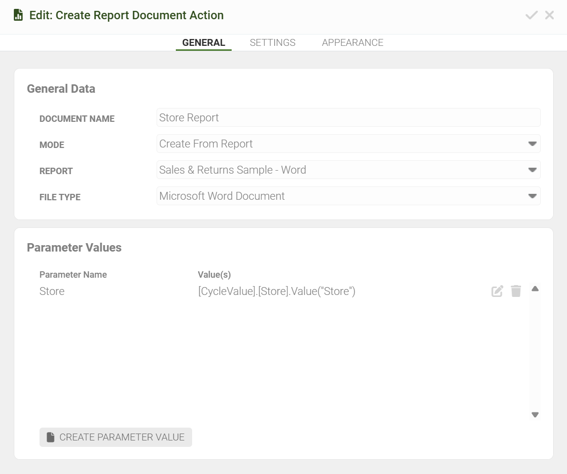 The Report is designed to receive as a Parameter the name of the Store. The Report itself will filter (using the WHERE clause) the tables to the Parameter.