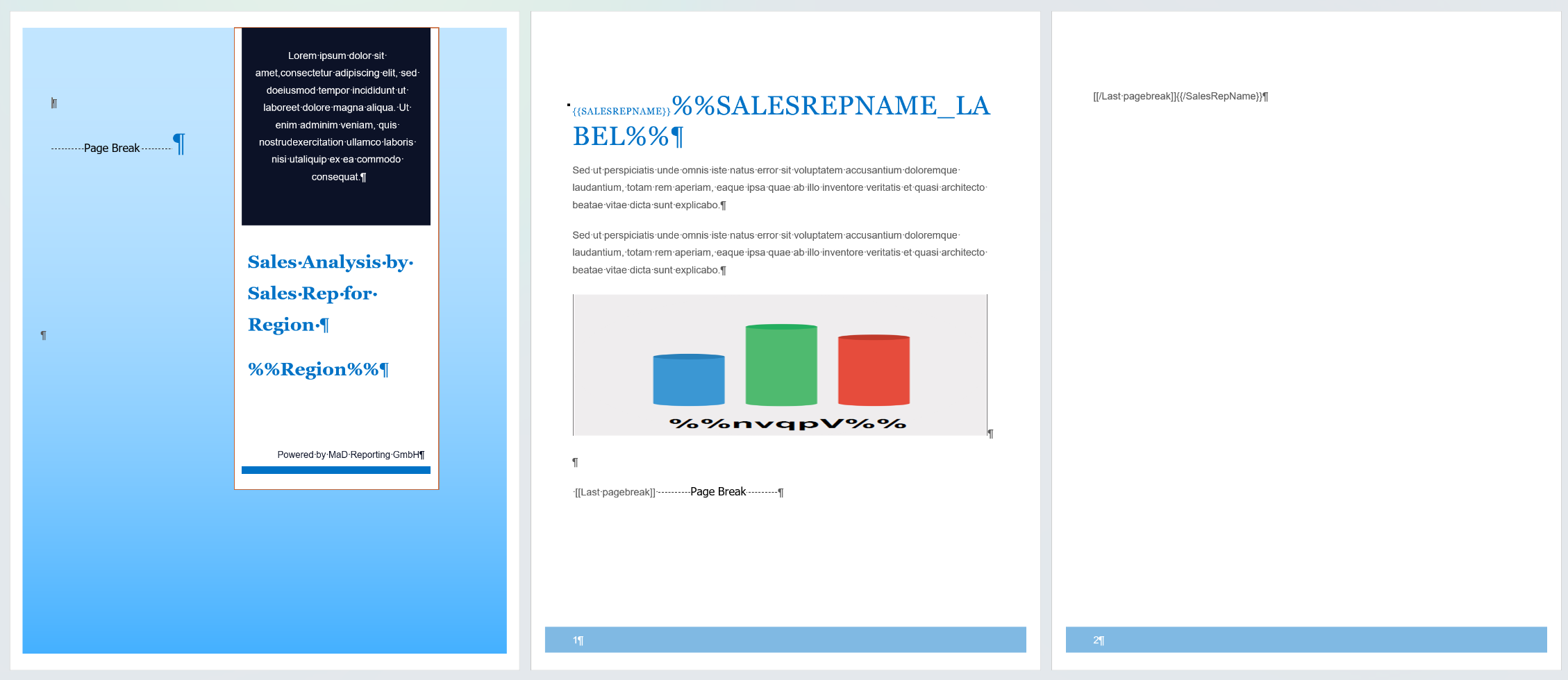 This is an example of the use of Page Breaks in Word when using repeaters.