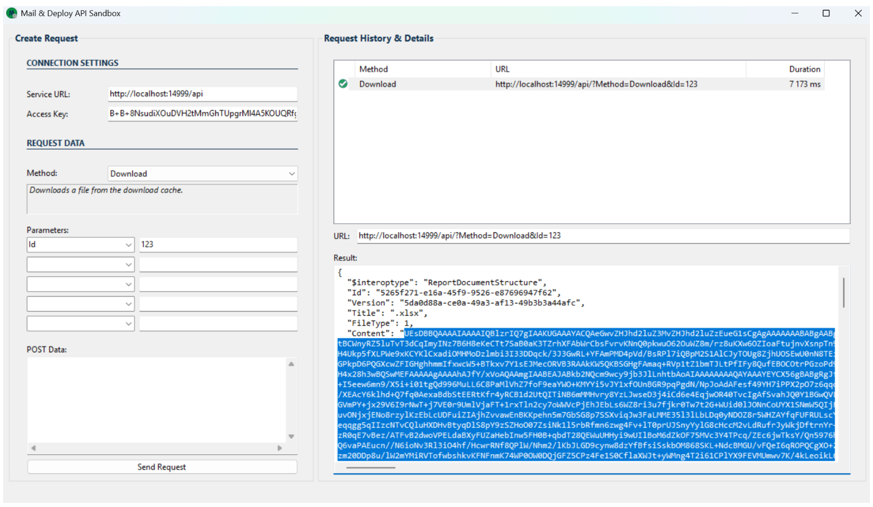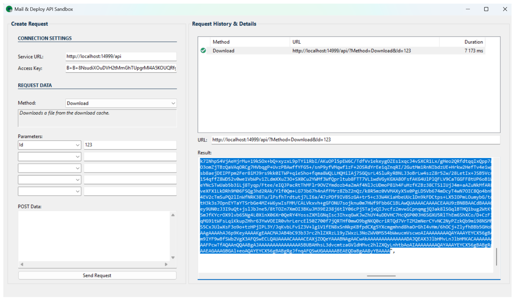 It is possible to try out the Download method using the M&D Sandbox and ID previously defined:
