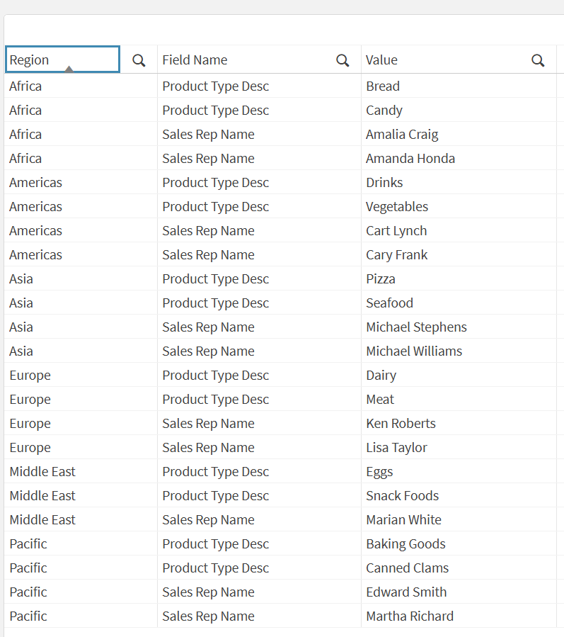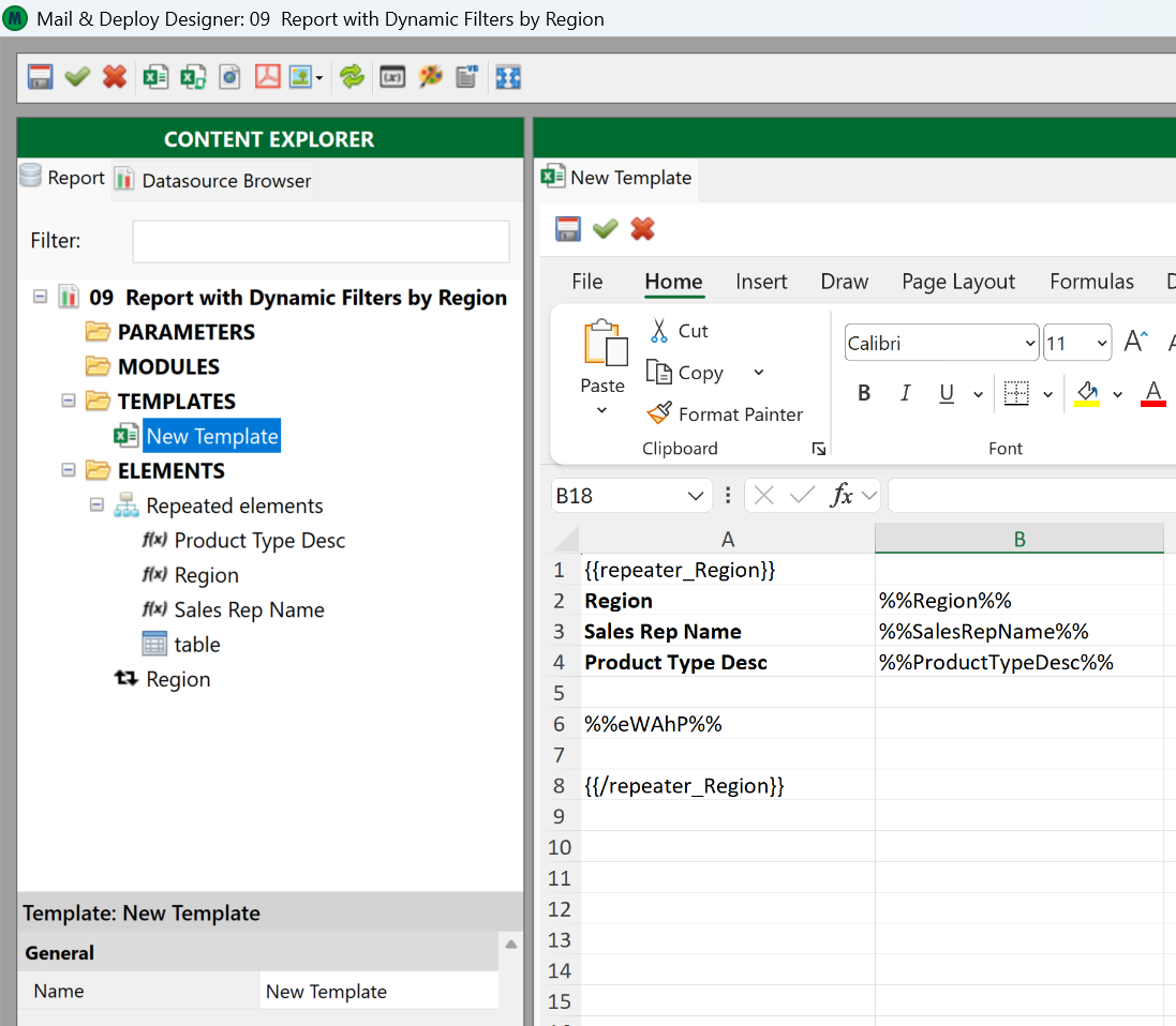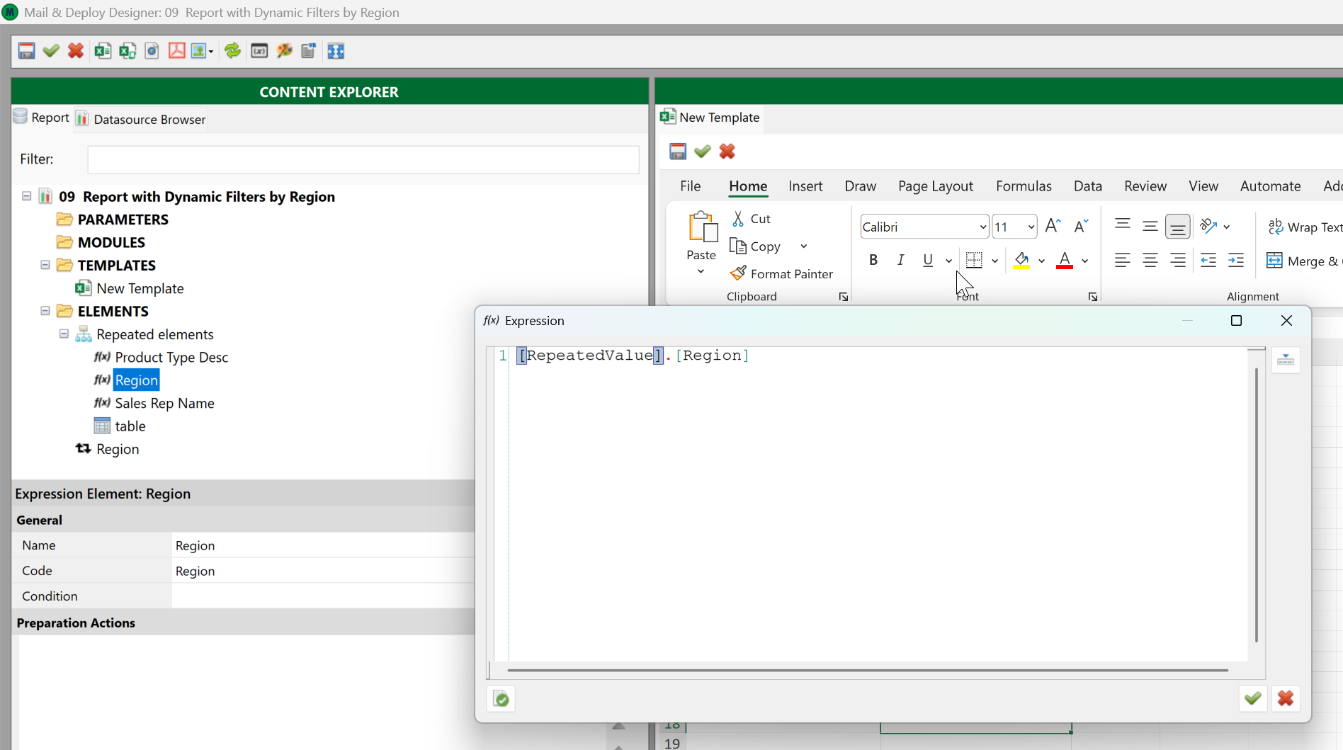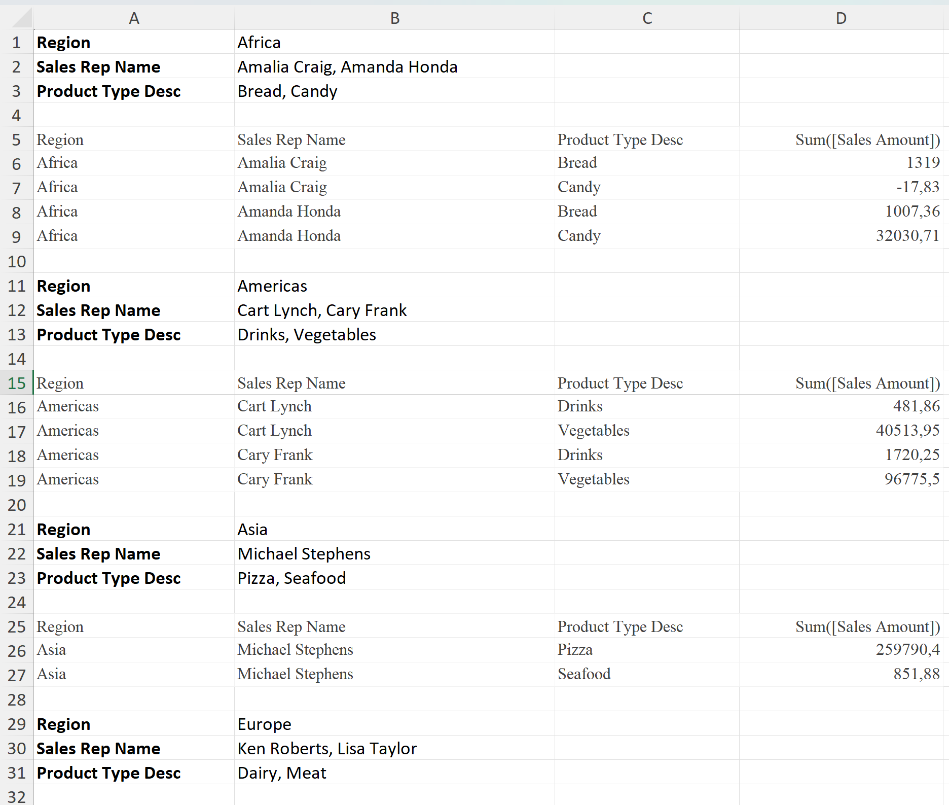 and we want to generate a special Report that will show per Region the Sales for 2 specific Sales Reps with 2 specific Products. We have the supporting App that looks like this: