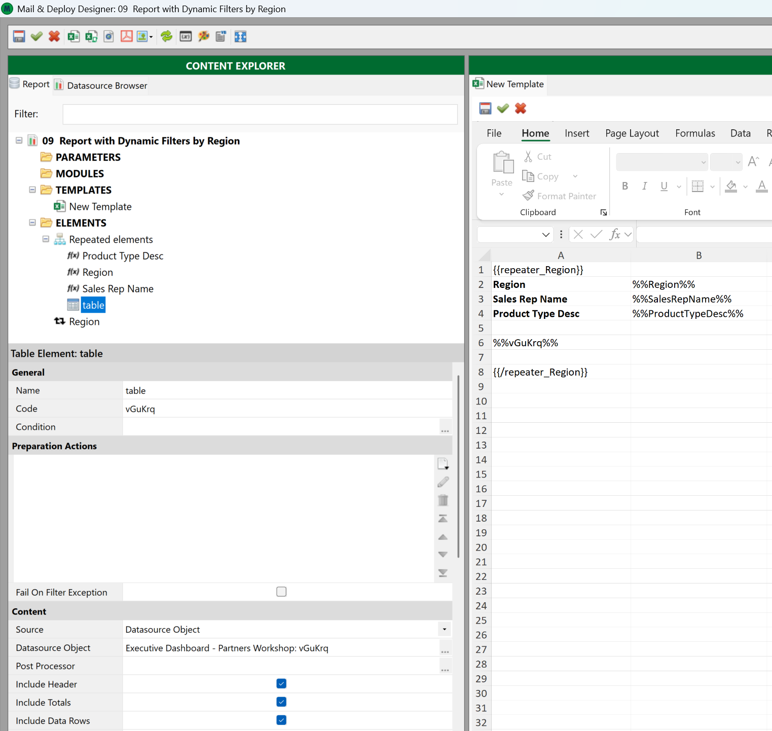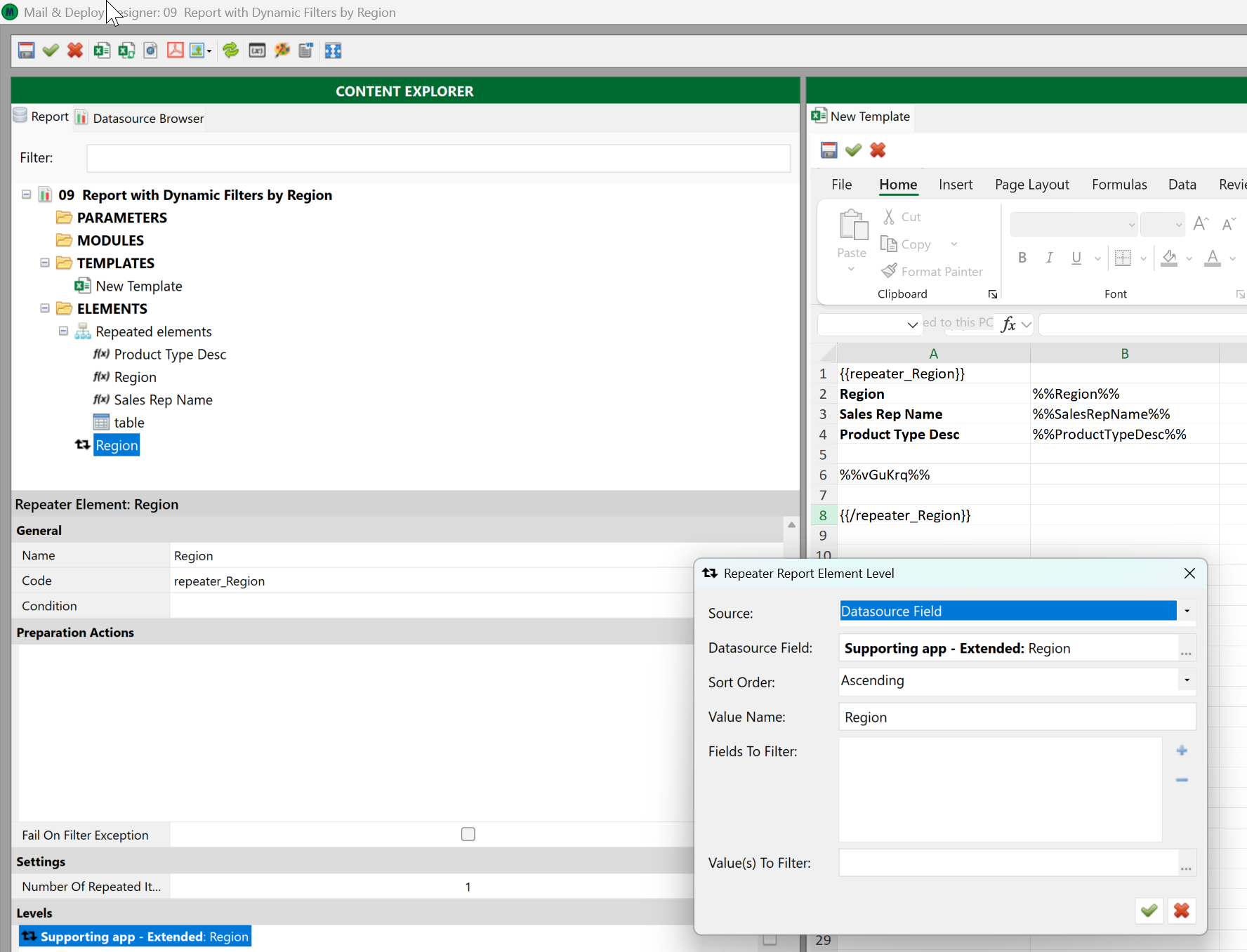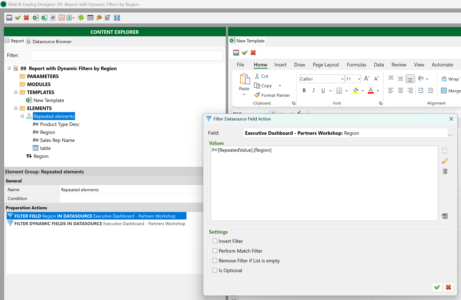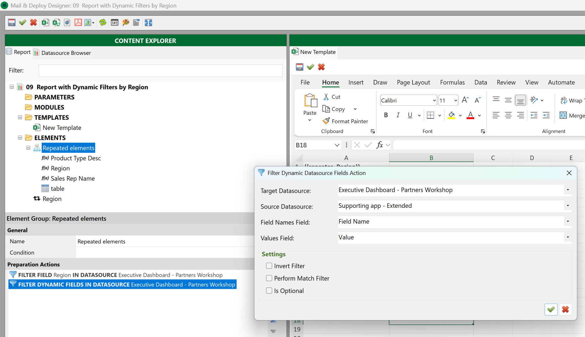 We have a report that was created using Filter Dynamic Datasource Fields Action.